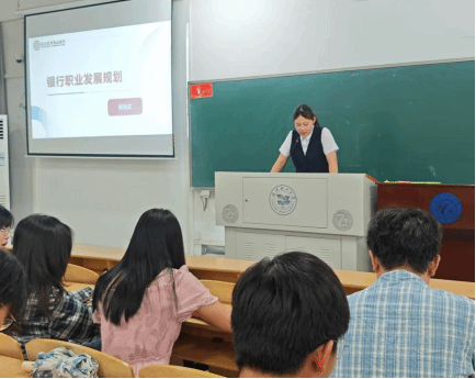 活动伊始,武汉农商行人力资源部张经理作《大学生职业规划——银行业的潜力与发展机遇》专题讲座。张经理深入剖析银行业数字化转型、普惠金融深化等核心趋势,并基于该行服务地方特色,清晰勾勒银行人才核心能力模型:扎实专业、科技应用、卓越服务与持续学习。她特别强调:“有效的认知实习始于清晰的行业框架与能力坐标。带着这份‘认知地图’走进实践,观察才更有方向,思考才更聚焦。”讲座为后续参访及认知实习提供了宝贵的理论导航和问题清单。